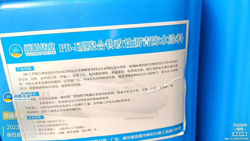 长沙防水材料招商网(生产厂址:湖北宜昌)供应的PB涂料以石油沥青为连续相,掺入苯乙烯-丁二烯-苯乙烯嵌段共聚物,经高速剪切乳化制成。单组分黑色液体,开桶搅拌均匀后即可冷施工,无需加热。该产品与水泥混凝土及沥青层粘结强度高,能有效抵抗桥面动载剪切。